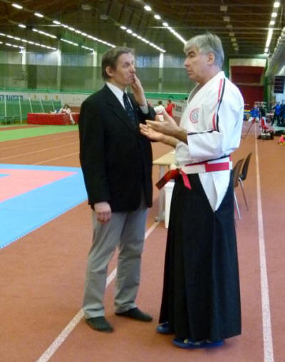 На фото президент Федерации Косики каратэ России М.В.Крысин и президент Международной федерации Косики каратэ Масаюки Хисатака. Церемония посвящения…